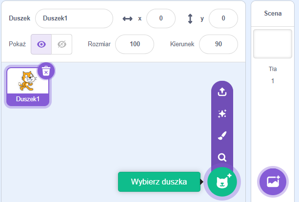 - Duszki (Aktorzy) – to postacie, którym wydajemy polecenia.
