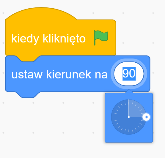 Blok 3: ustaw kierunek na 90